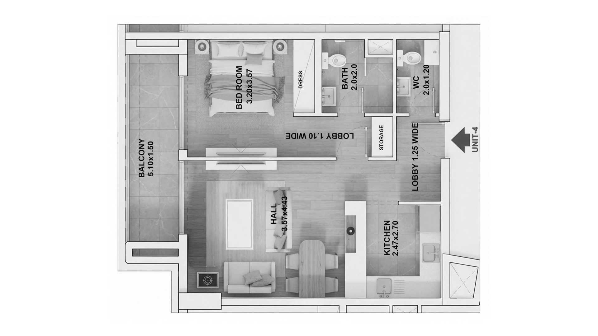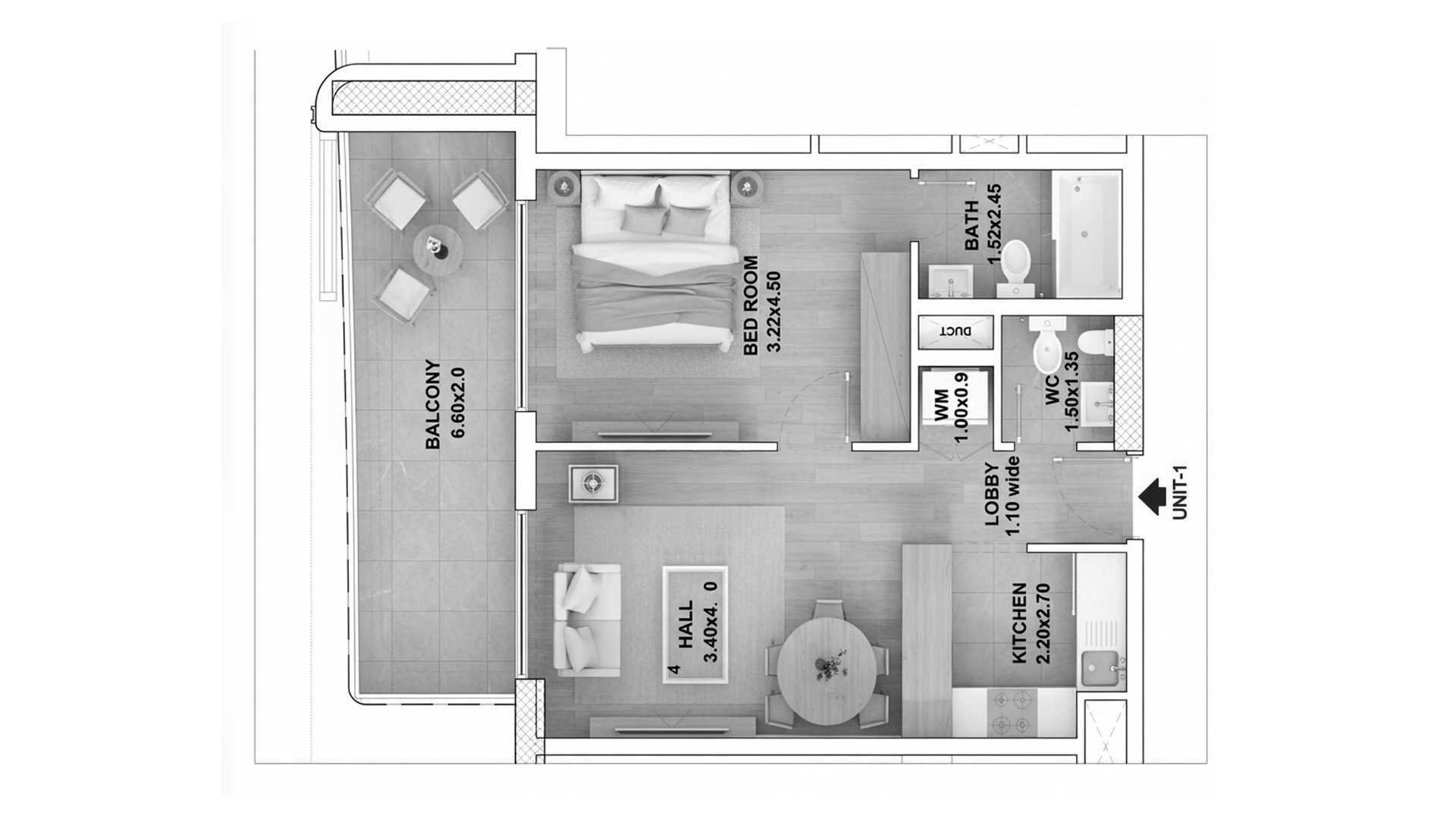 Floor plan 1 bedroom, in RR Grand