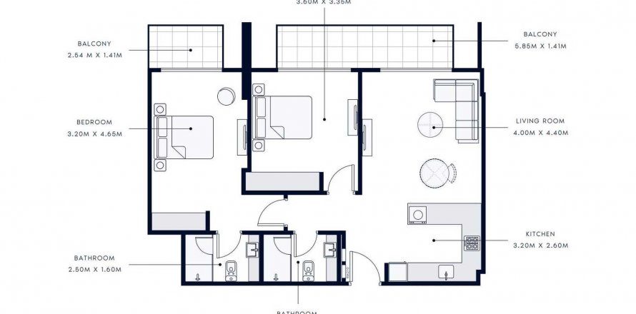 Floor plan «TYPE 02», 2 bedrooms, in AZIZI AMBER