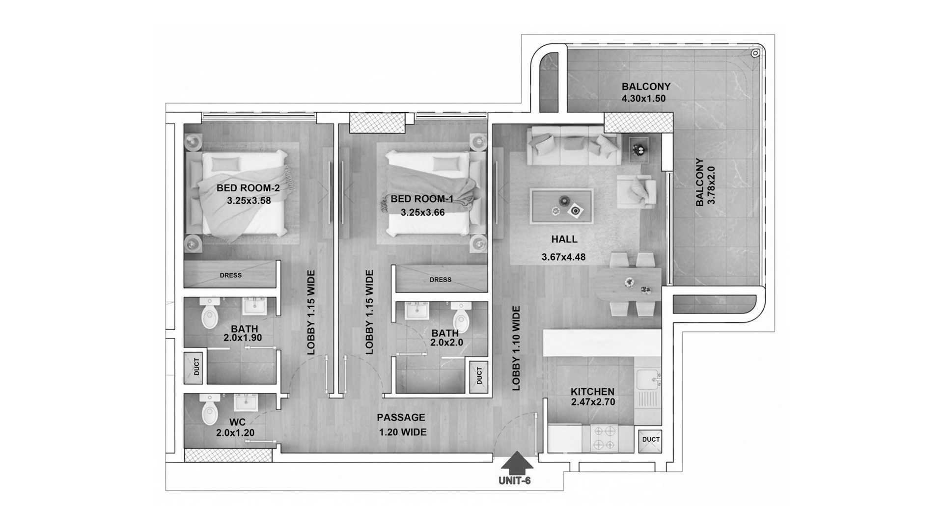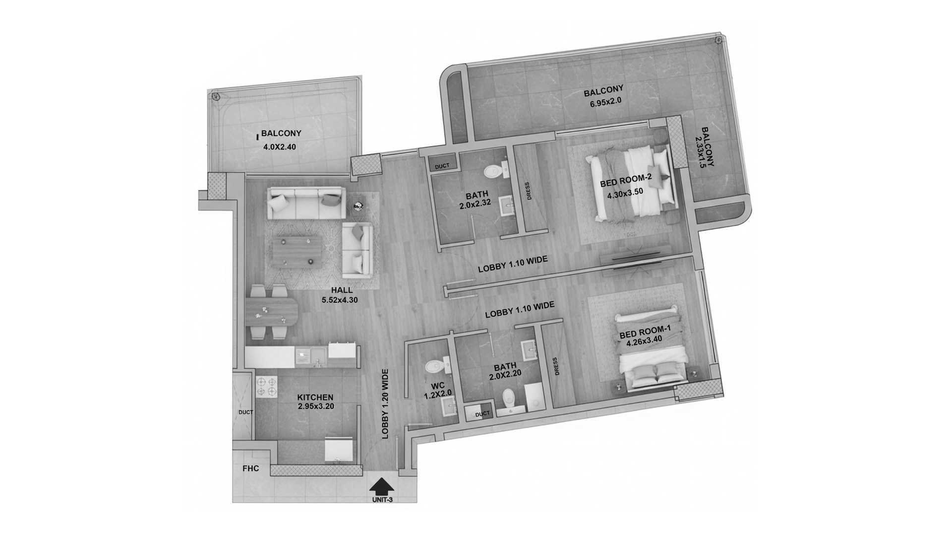 Floor plan 1 bedroom, in RR Grand