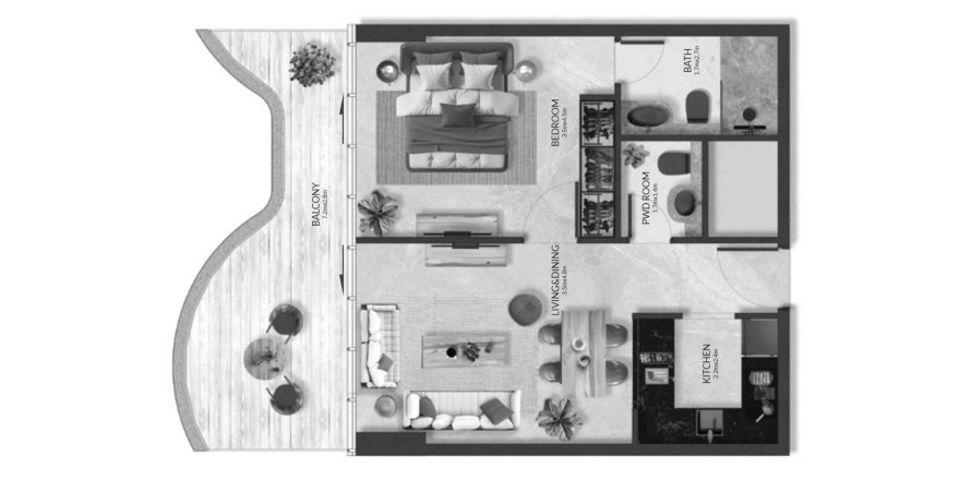 Floor plan «TYPE B», 1 bedroom, in Aqua Maya