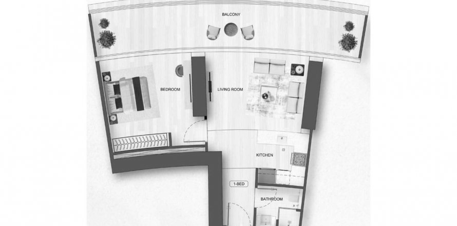 Korter korruseplaan «1BR», 1 magamistoaga in Binghatti Flare