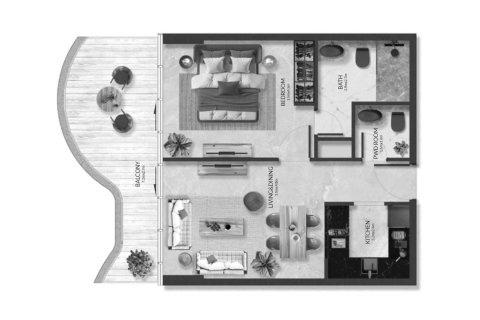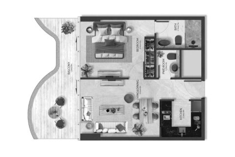 Floor plan 1 bedroom, in Aqua Maya
