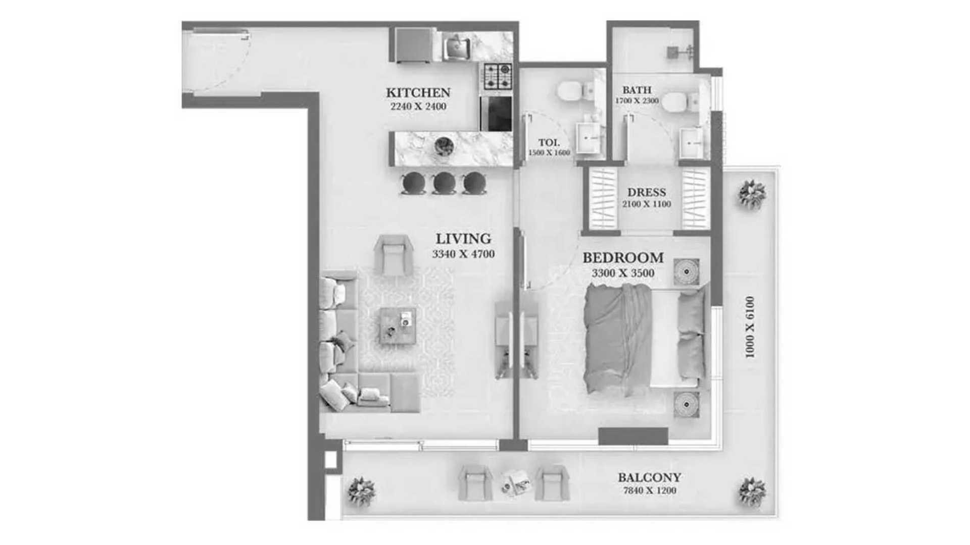 Floor plan 1 bedroom, in AUM 99