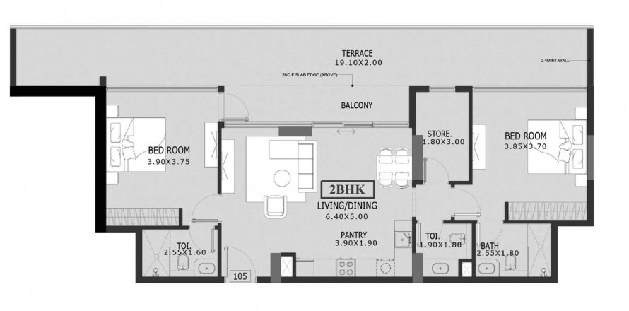 Floor plan «2BR», 2 bedrooms, in Estrella By Nexus