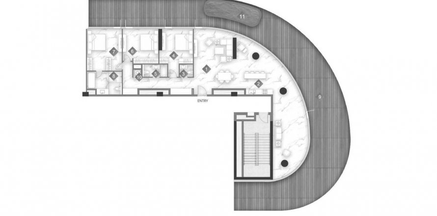 Floor plan «3BR», 3 bedrooms, in Aqua Arc