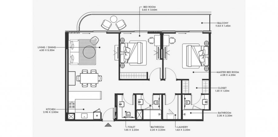 Floor plan «2BR», 2 bedrooms, in Azizi Ameer