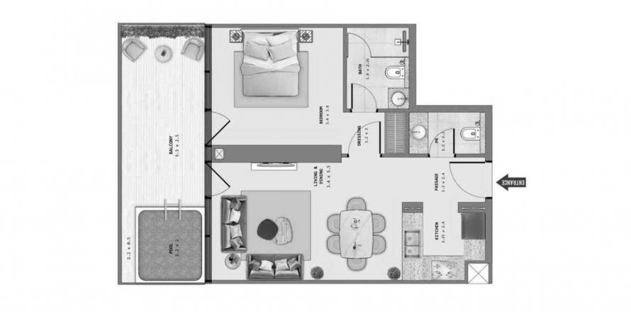 Floor plan «1BR», 1 bedroom, in Samana Barari Lagoons