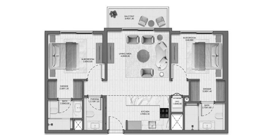 Floor plan «TYPE B», 2 bedrooms, in Evelyn