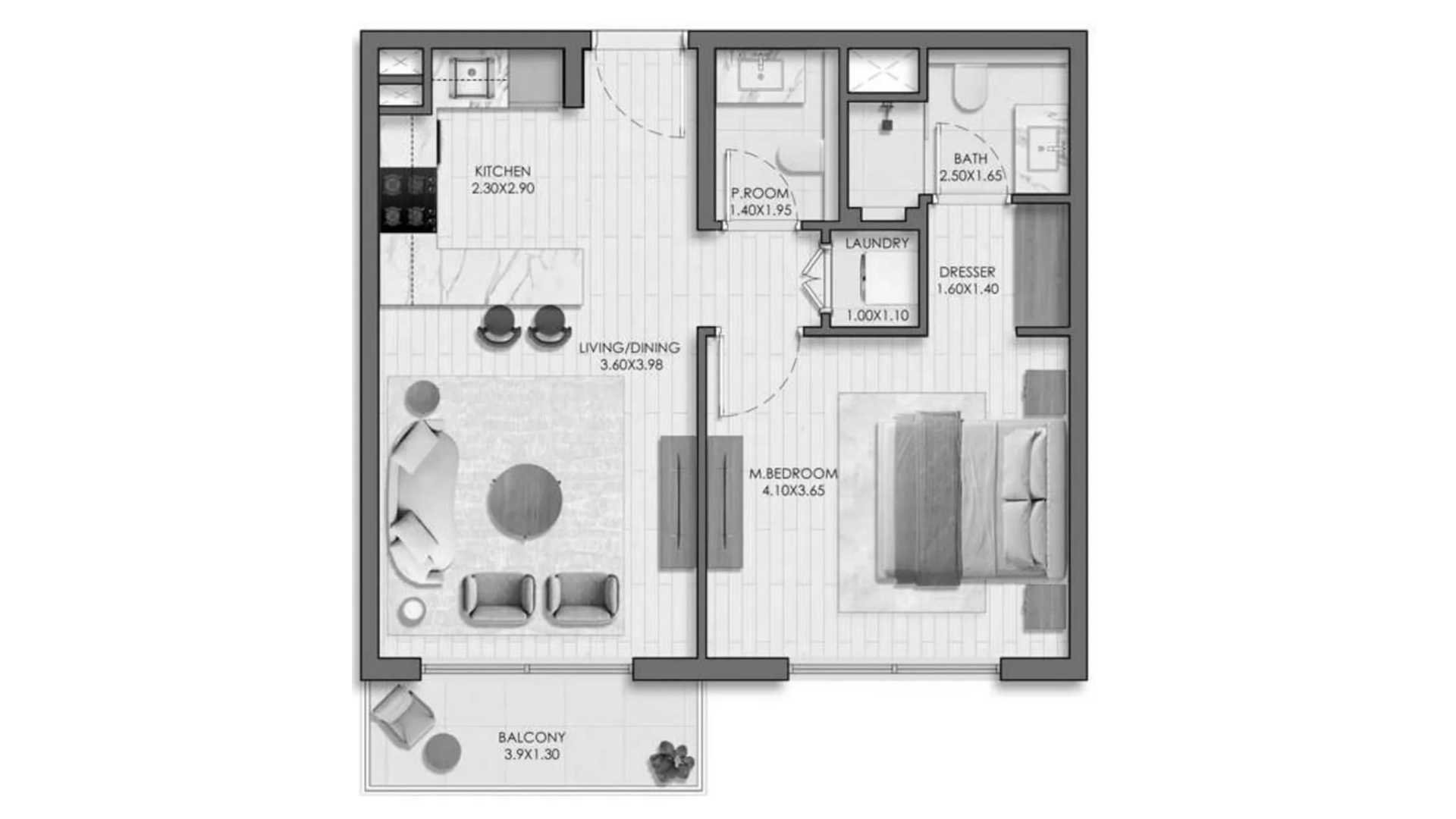Floor plan 1 bedroom, in Belmont