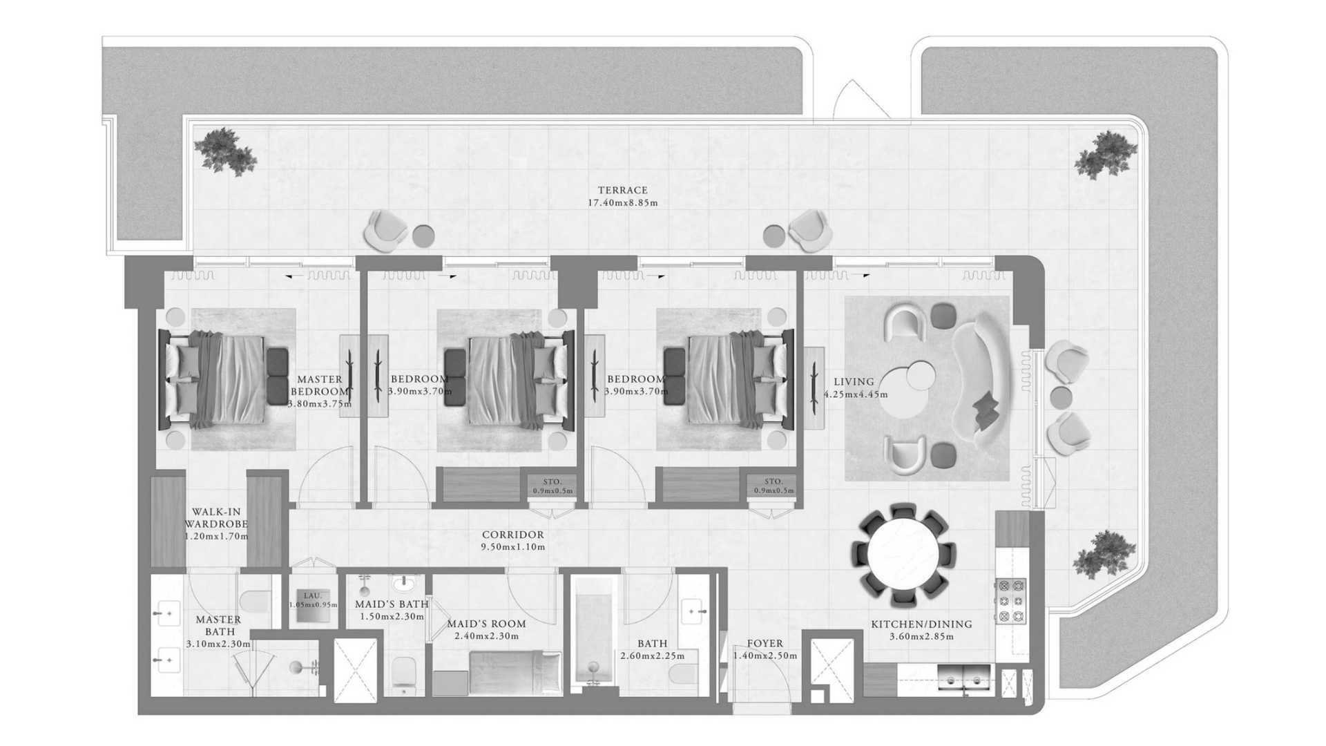 דירה ב Mina Rashid, Dubai, איחוד האמירויות 3 חדרי שינה, 190 מ"ר מספר 694416