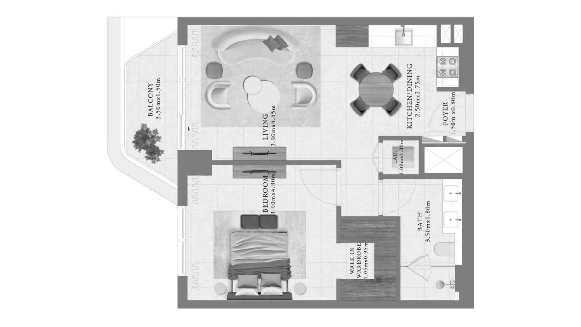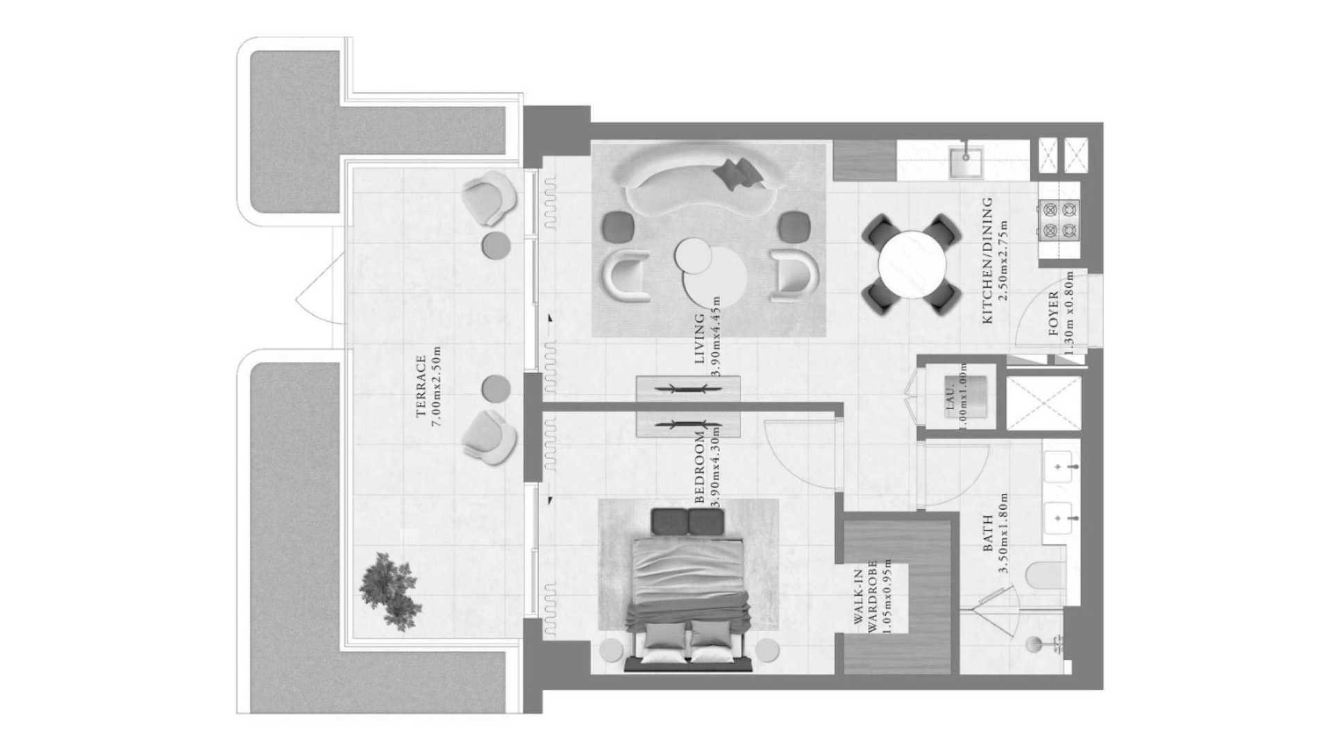Floor plan 1 bedroom, in Sera 1