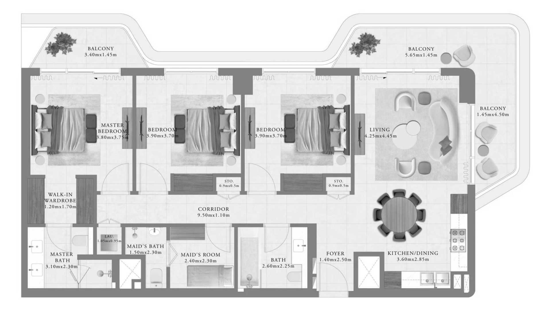 דירה ב Mina Rashid, Dubai, איחוד האמירויות 3 חדרי שינה, 156 מ"ר מספר 694415