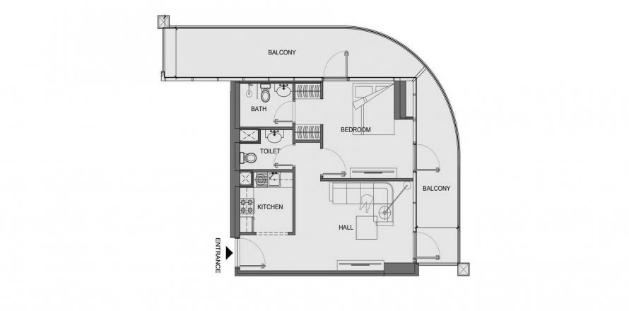 Floor plan «1 bedrooms», 1 bedroom, in V-Suites by Anax