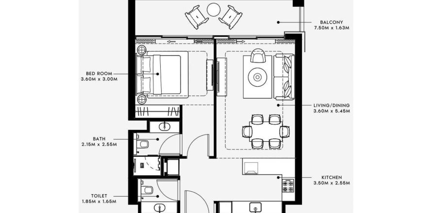 Lakás «TYPE 04» alaprajz, 1 hálószoba a AZIZI RIVIERA 60