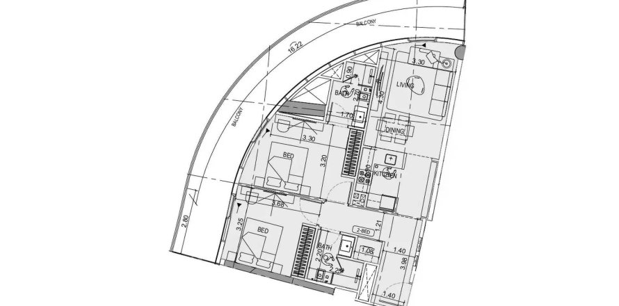 Lakás «TYPE 2BR» alaprajz, 2 hálószoba a Binghatti Skyflame