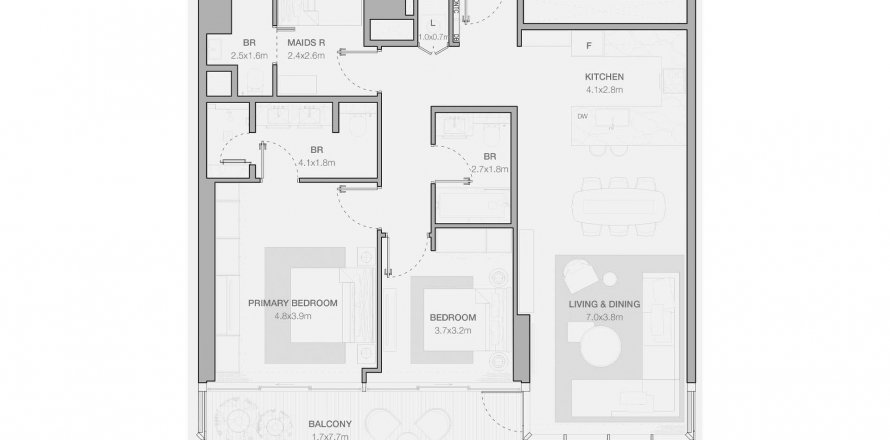 Denah «TYPE B2», 2 kamar tidur di Jumeirah Residences Emirates Towers