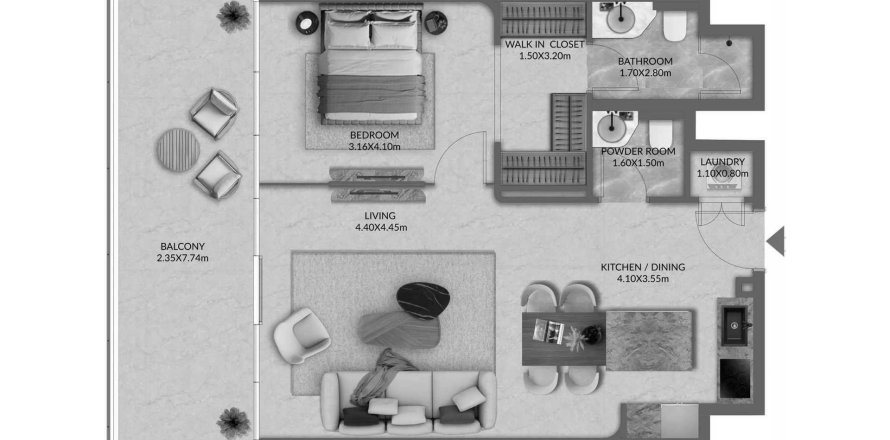 Denah «1BR», 1 kamar tidur di Palazzo Tissoli