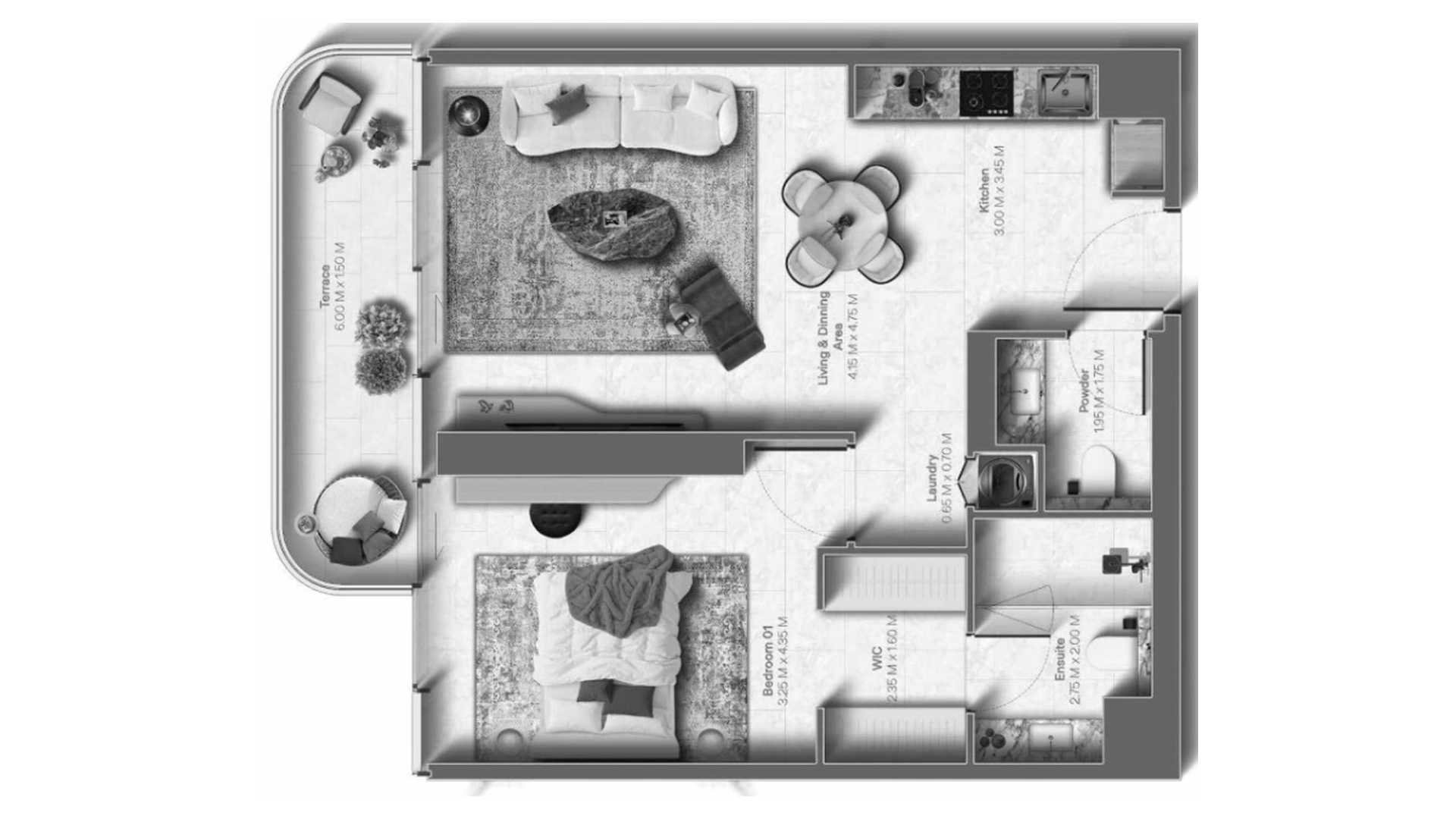 Floor plan 1 bedroom, in Le Chateau
