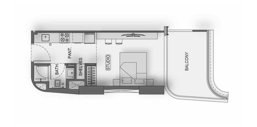 Пәтер қабат жоспары «TYPE 02», 1 бөлме Binghatti Hillside