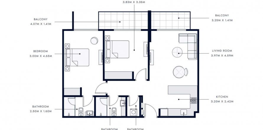 Floor plan «TYPE 03», 2 bedrooms, in AZIZI AMBER