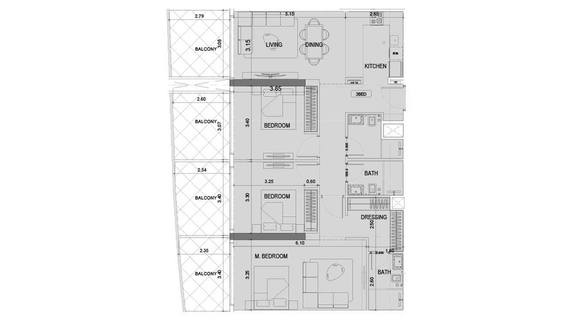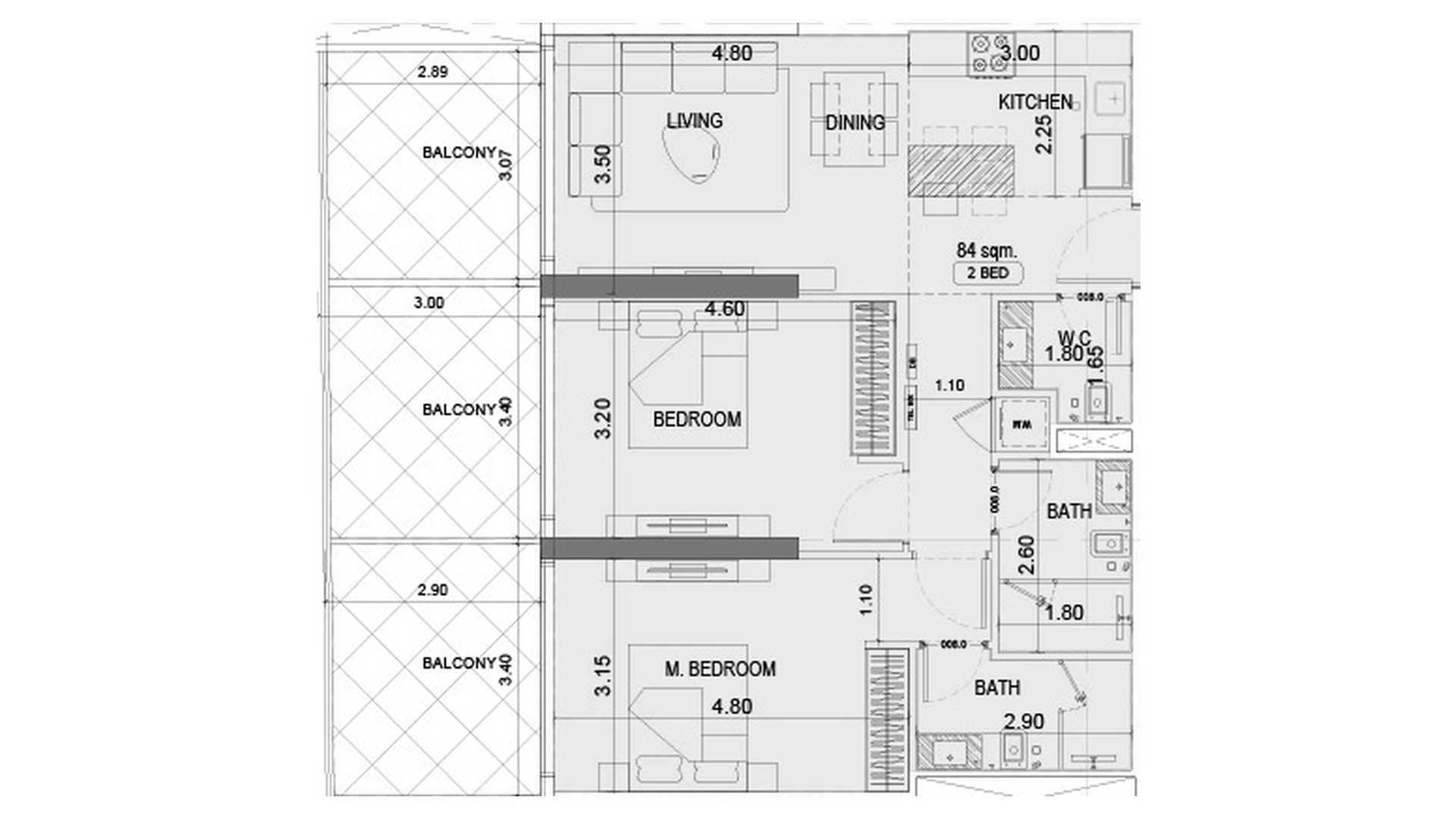 Floor plan 2 bedrooms, in Project Maybach