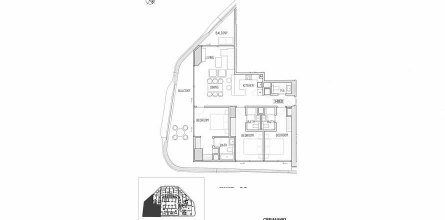 Floor plan «3BR», 3 bedrooms, in CORAL REEF APARTMENTS