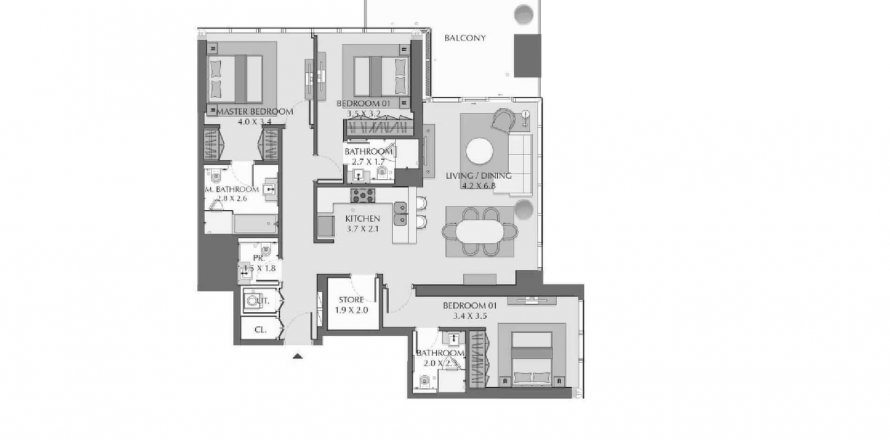 Floor plan «TYPE B1», 3 bedrooms, in WASL 1 RESIDENCES