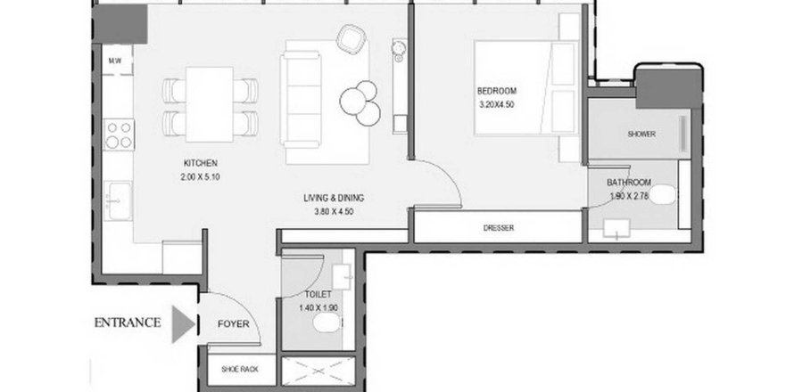 Floor plan «TYPE A1», 1 bedroom, in Zen Lagoons