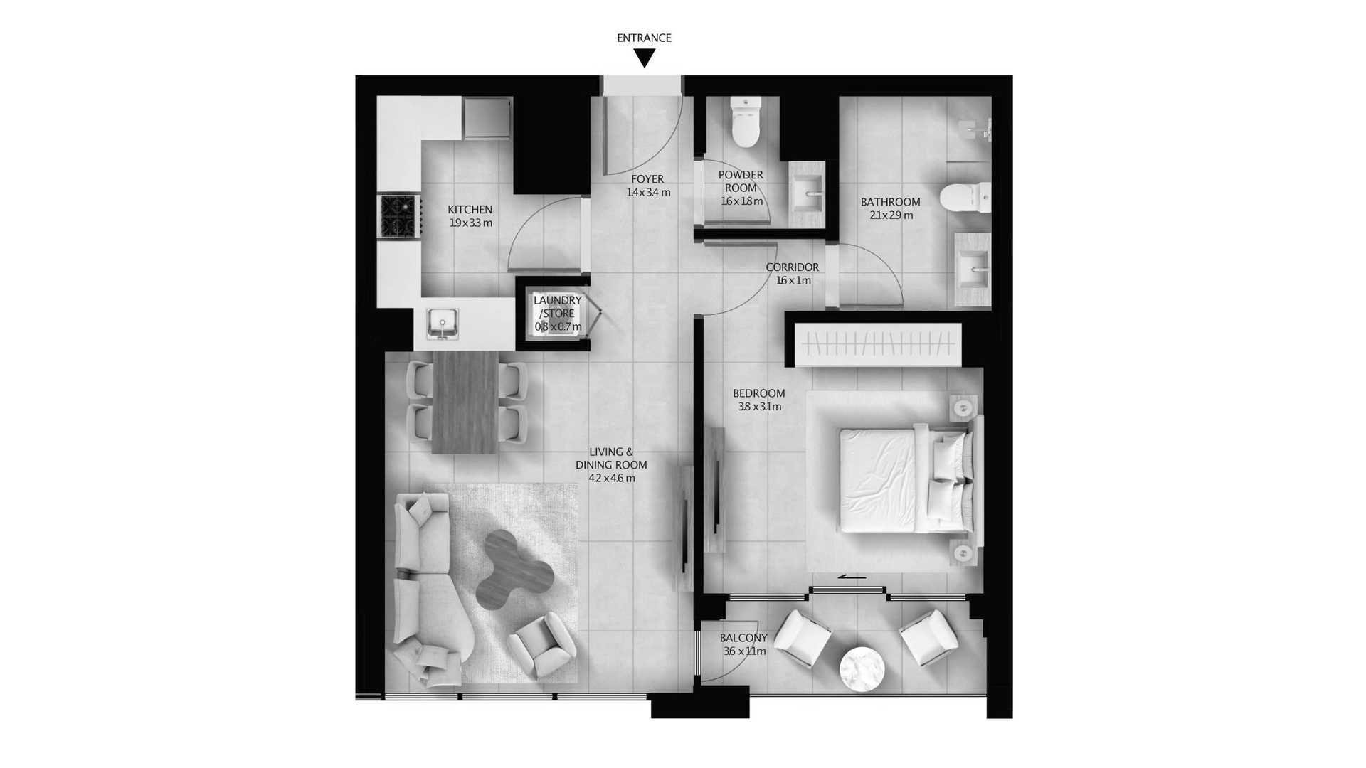 Apartment floor plan, 1 bedroom in Altura 2 No. 646650