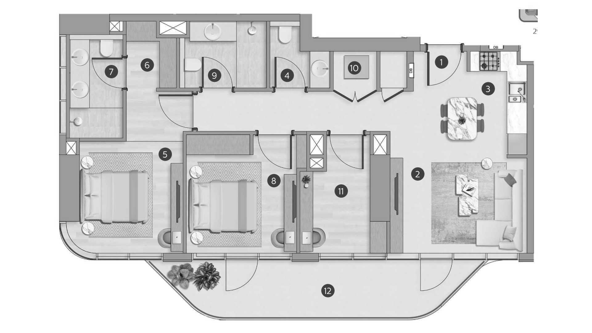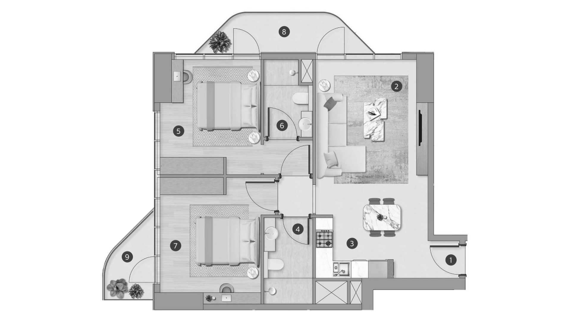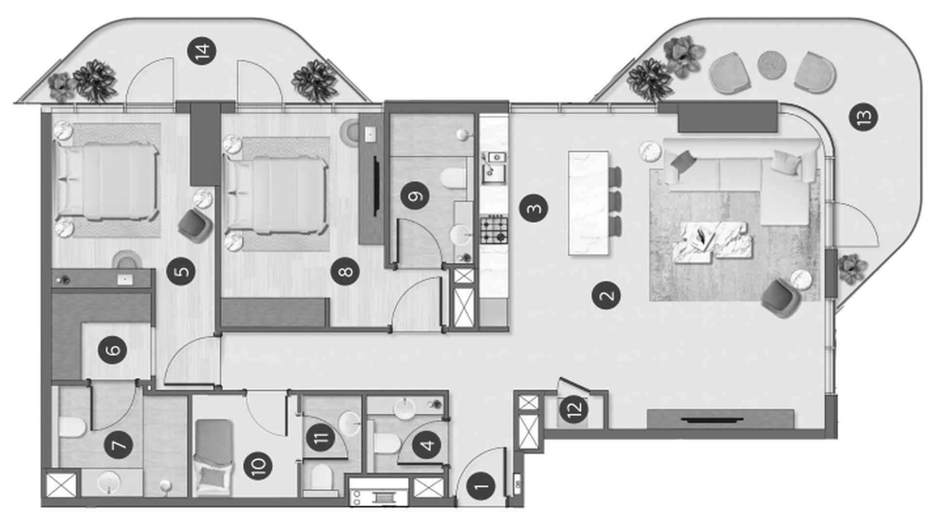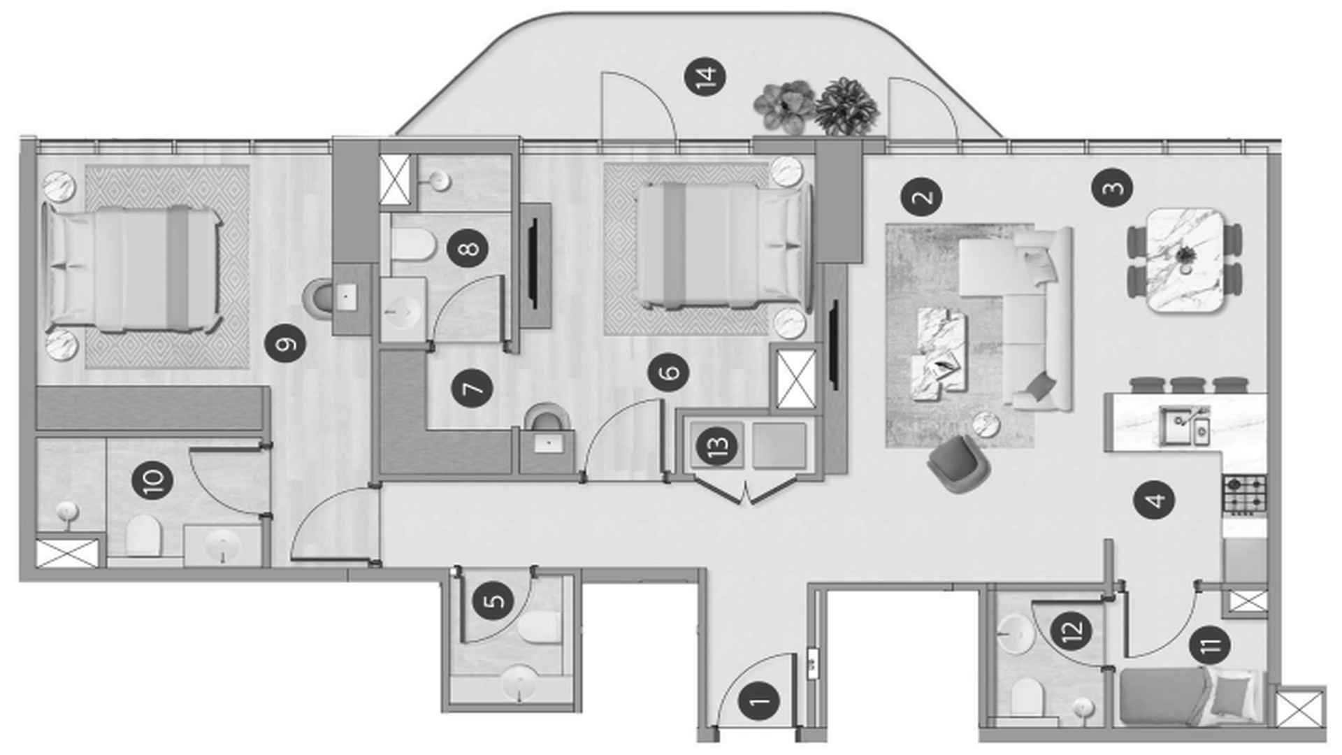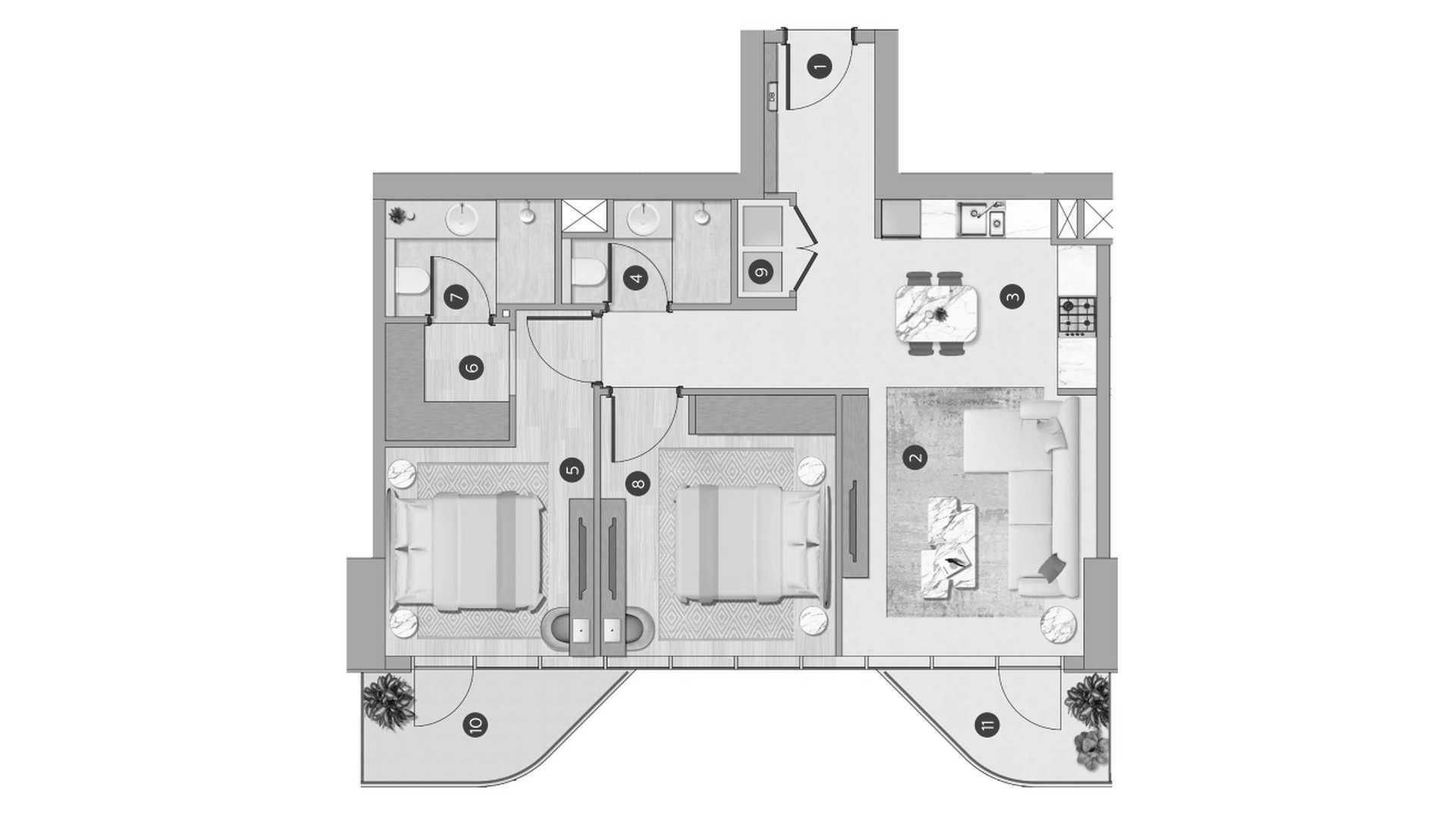 Apartment floor plan, 2 bedrooms in Flora Shore Beachfront Residences No. 647266