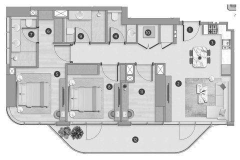 Rooms: 3Bedrooms: 2Bathrooms: 2Living space: 106.9 m²Distance to the sea: 300 m