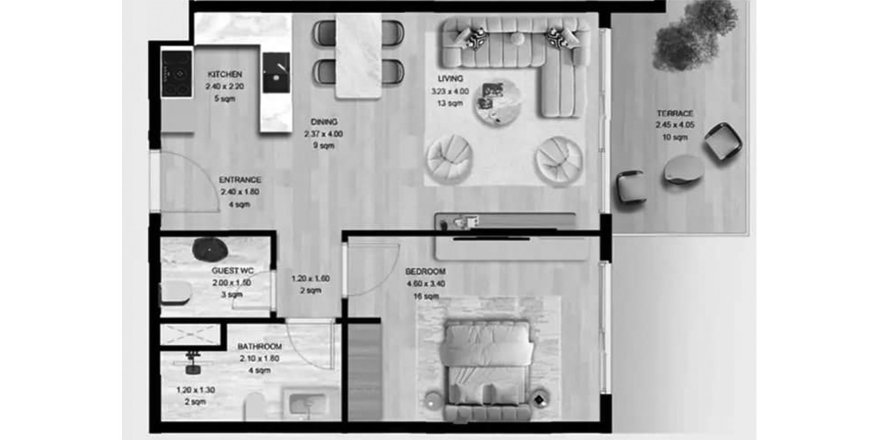 Apartment floor plan «TYPE 1BR», 1 bedroom in Manchester City Yas Residences
