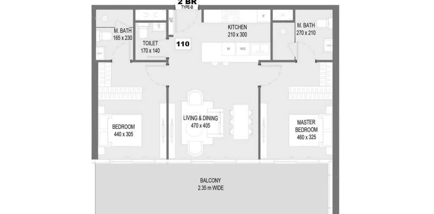Apartment floor plan «TYPE B», 2 bedrooms in Sensi