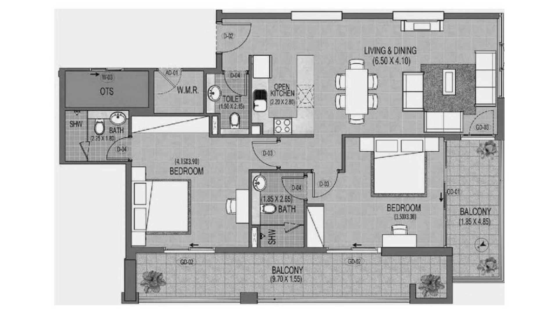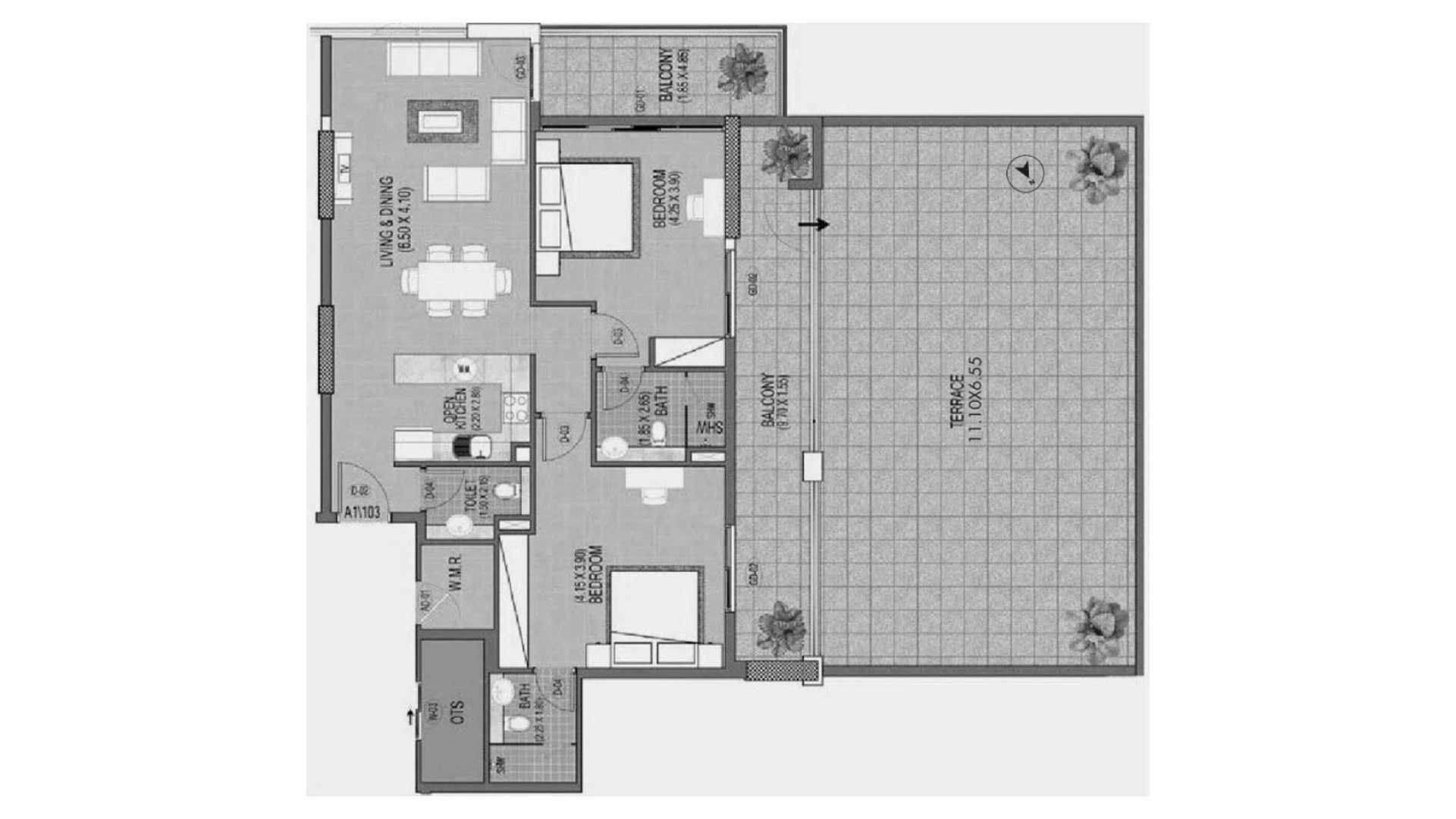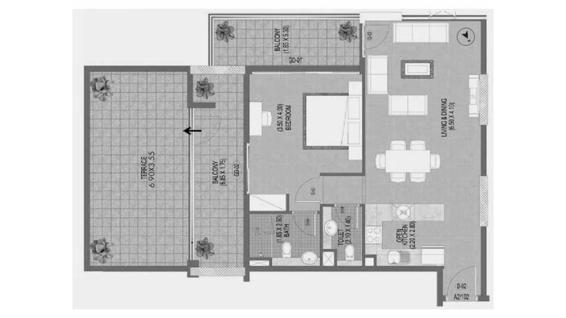 Apartment floor plan, 1 bedroom in Triana Residences No. 690699