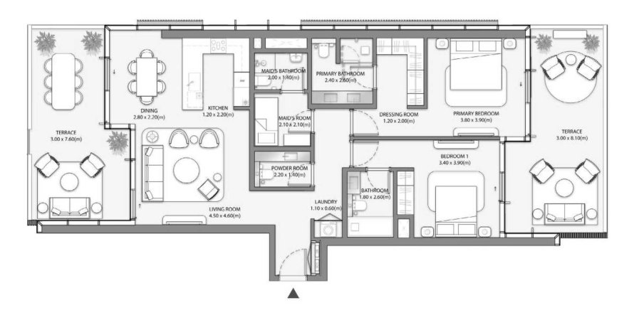 Floor plan «TYPE A+», 2 bedrooms, in Palm Central Private Residences