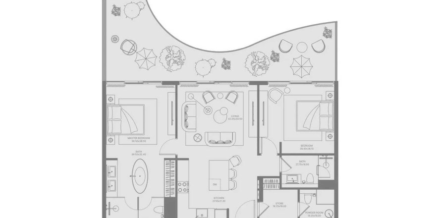 Планировка «TYPE 2BR» 3 комнаты в ЖК Bond Enclave