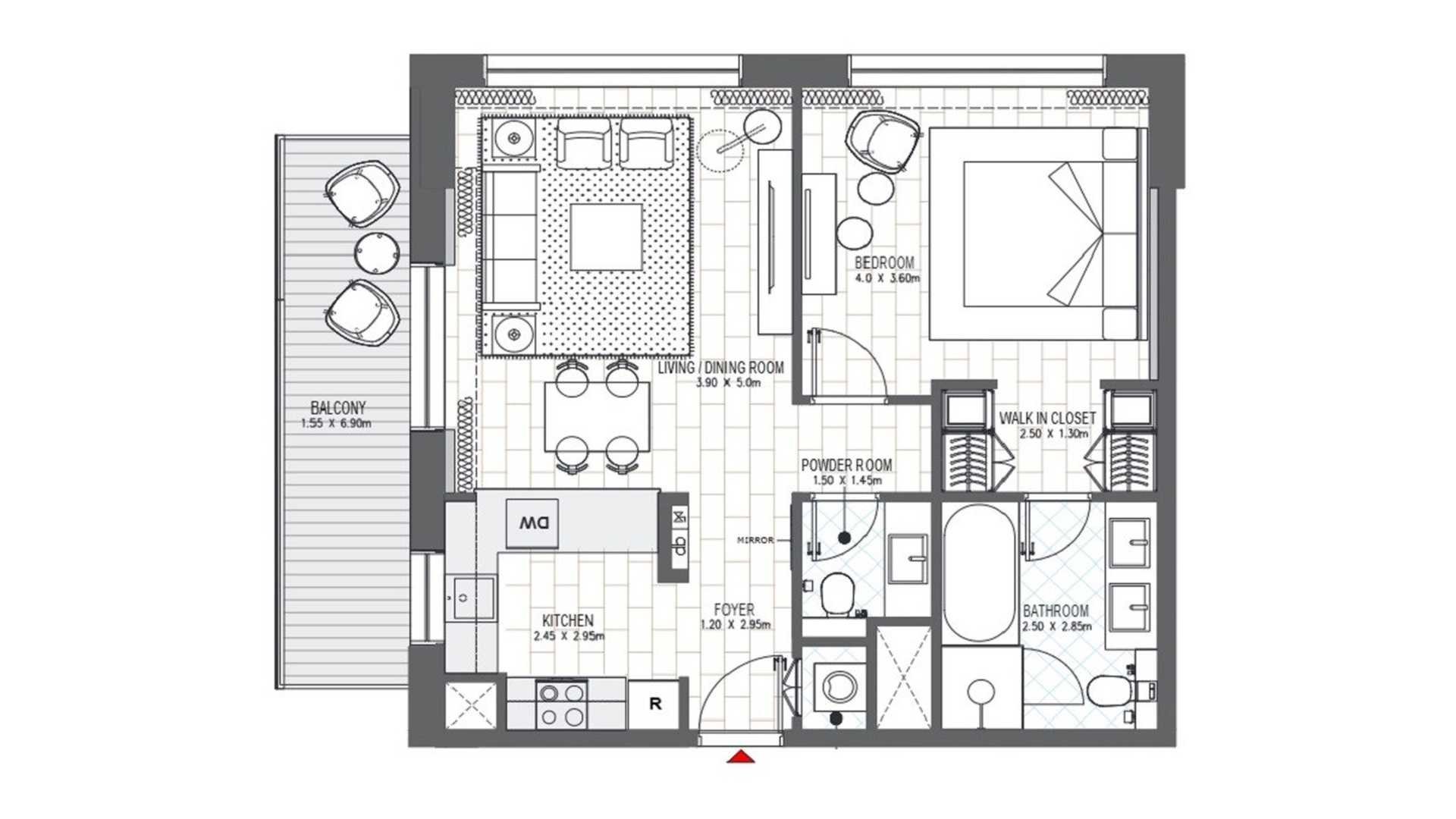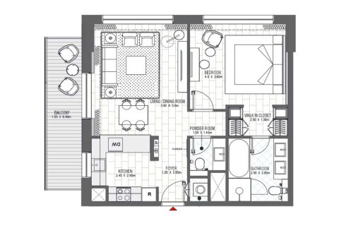 Планировка 1 спальня в ЖК Palace Residences Al Mamsha