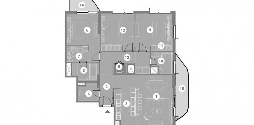 Планировка «3BR» 3 спальни в ЖК Takaya Symphony