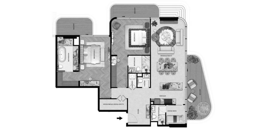 Планировка «TYPE 03-2» 3 комнаты в ЖК Treppan Living Prive