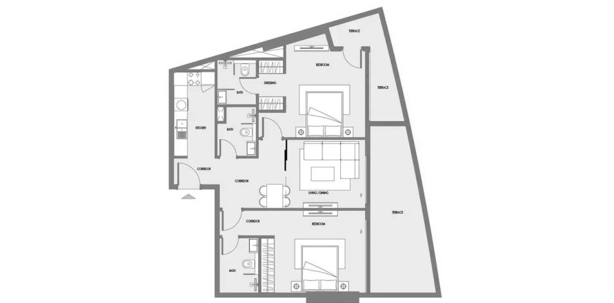 Floor plan «TYPE 2BR», 2 bedrooms, in Samana Greenfield