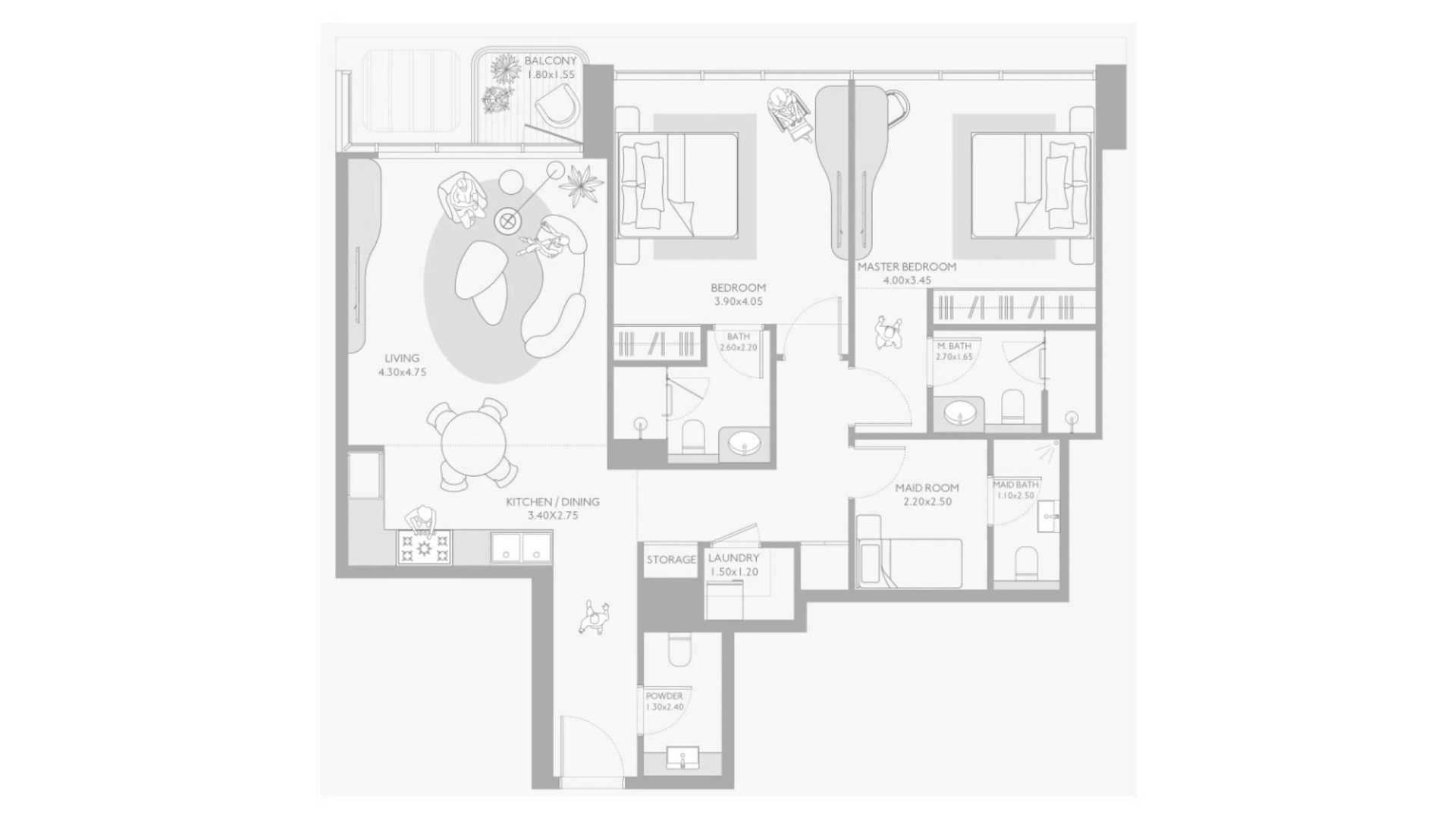 Apartman tlocrt, 1 spavaća soba u Isla Private Residences No. 698583