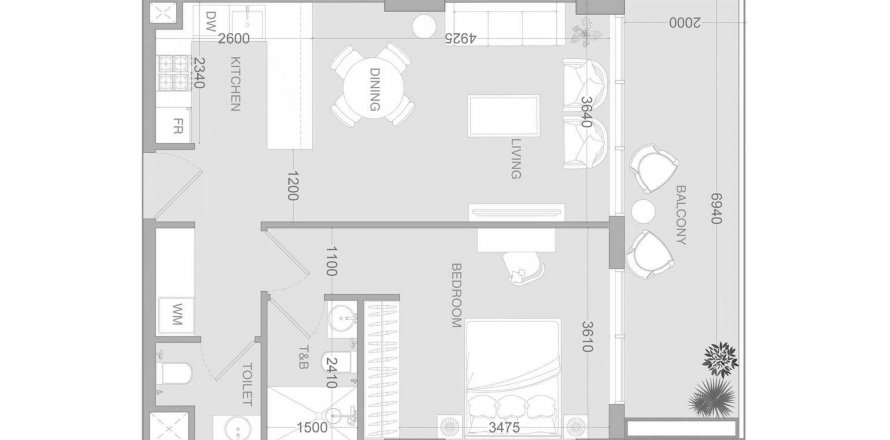 Floor plan «1BR», 1 bedroom, in Ir1dian Park 2
