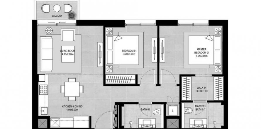 Floor plan «TYPE C», 2 bedrooms, in Fiori Residences