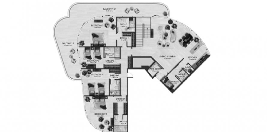 Floor plan «PENTHOUSE TYPE B», 4 bedrooms, in Acacia by Fashion TV