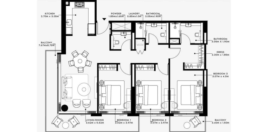 Floor plan «TYPE 01», 3 bedrooms, in Azizi Venice 14