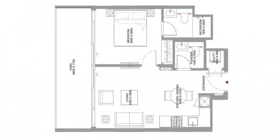 Floor plan «1BR», 1 bedroom, in Pearlside Marina Residences